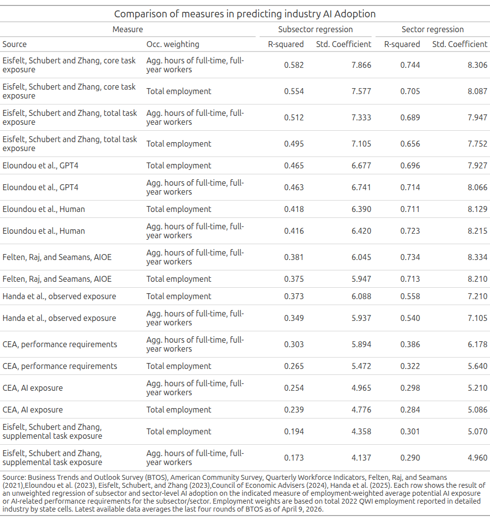 Evaluate the capacity for detailed industry-occupation linkage to capture variation in AI exposure across industries
