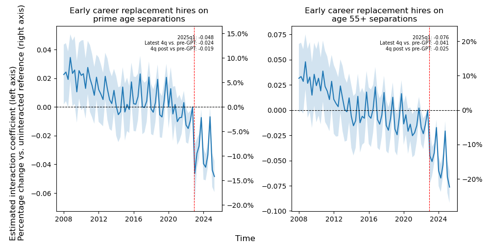 Growing AI-exposed firms became less likely to fill new positions with early career workers